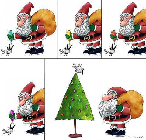 As the cartoonist Ramsés Morales expresses, in a recent “dialogue” carried out with our director Pepe Pelayo, and published on this website in the Interviews section: “There is nothing sacrosanct at which we cannot laugh,” and for this reason we have selected a group of cartoons that, taking Christmas and New Year's Eve as a pretext, address current issues with a humorous look. And graphic humor has no borders, in the land of the imagination.