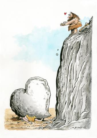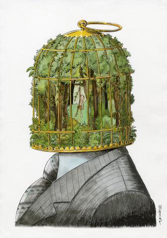 What I immediately discovered, and which has always been the guideline of my humor, is that every idea and graphic comment (even in its artistic realization) must immediately reach the heart and mind of the reader, with a concise and immediate concept. I have always used humor without words (except on rare occasions when the text was essential or functional) and I have always preferred graphic metaphor, symbolism, games of paradoxes or surreal situations. This choice of mine was certainly challenging, but it allowed me to always have a relationship of direct understanding with the international public.